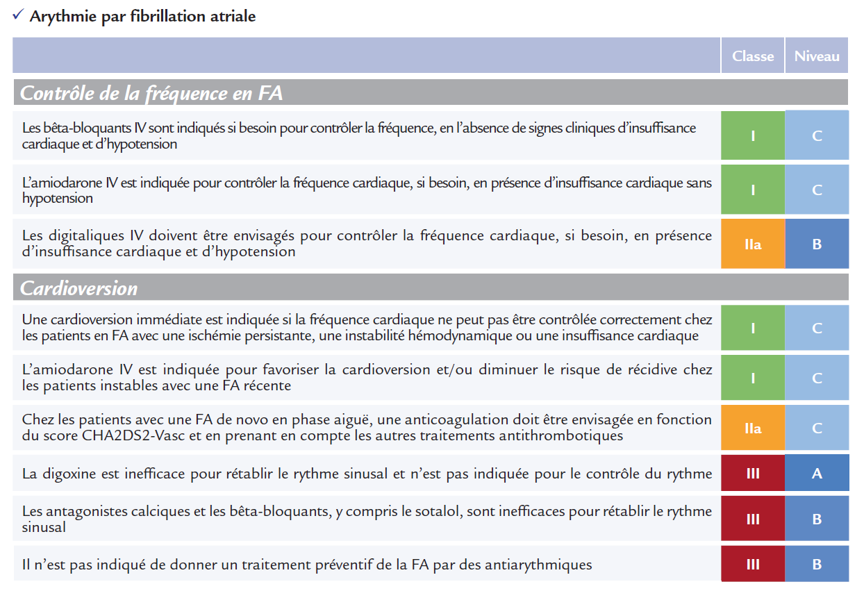 D’autres recommandations sont proposées pour les patients ayant une dysfonction ventriculaire gauche et une insuffisance cardiaque aiguë.