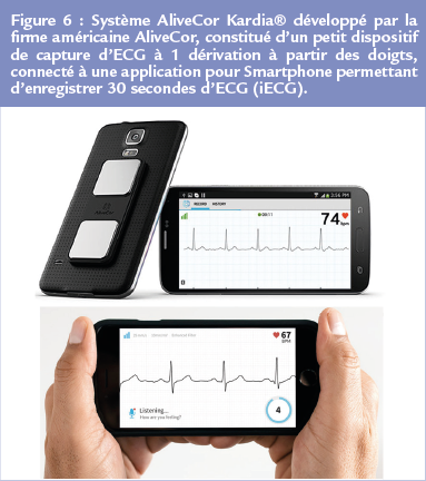 numériques rend désormais accessible à tout un chacun la possibilité de surveiller soi-même différents paramètres de sa santé (« quantify yourself »), et notamment le rythme cardiaque. Le dépistage de masse de la FA silencieuse par les nouvelles technologies, dans cette optique, est une voie de développement majeure de la santé connectée.21,22 De nombreuses solutions d’enregistrement de l’ECG (une ou plusieurs dérivations) sont disponibles sur le marché, dont certaines ont démontré scientifiquement leur fiabilité et sont recommandées pour la détection des arythmies cardiaques (Tableau 1).11,22