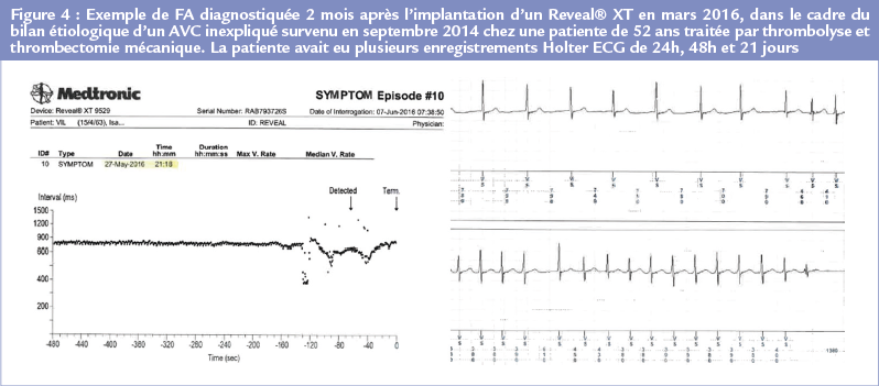 Jusqu’à récemment réservé au seul bilan des syncopes récidivantes inexpliquées, leurs indications se sont élargies au bilan étiologique des AVC cryptogéniques (classe IIaB),6 depuis la publication des résultats de l’étude CRYSTAL AF.5 Ils sont dorénavant remboursés en France dans cette indication (Figure 4)